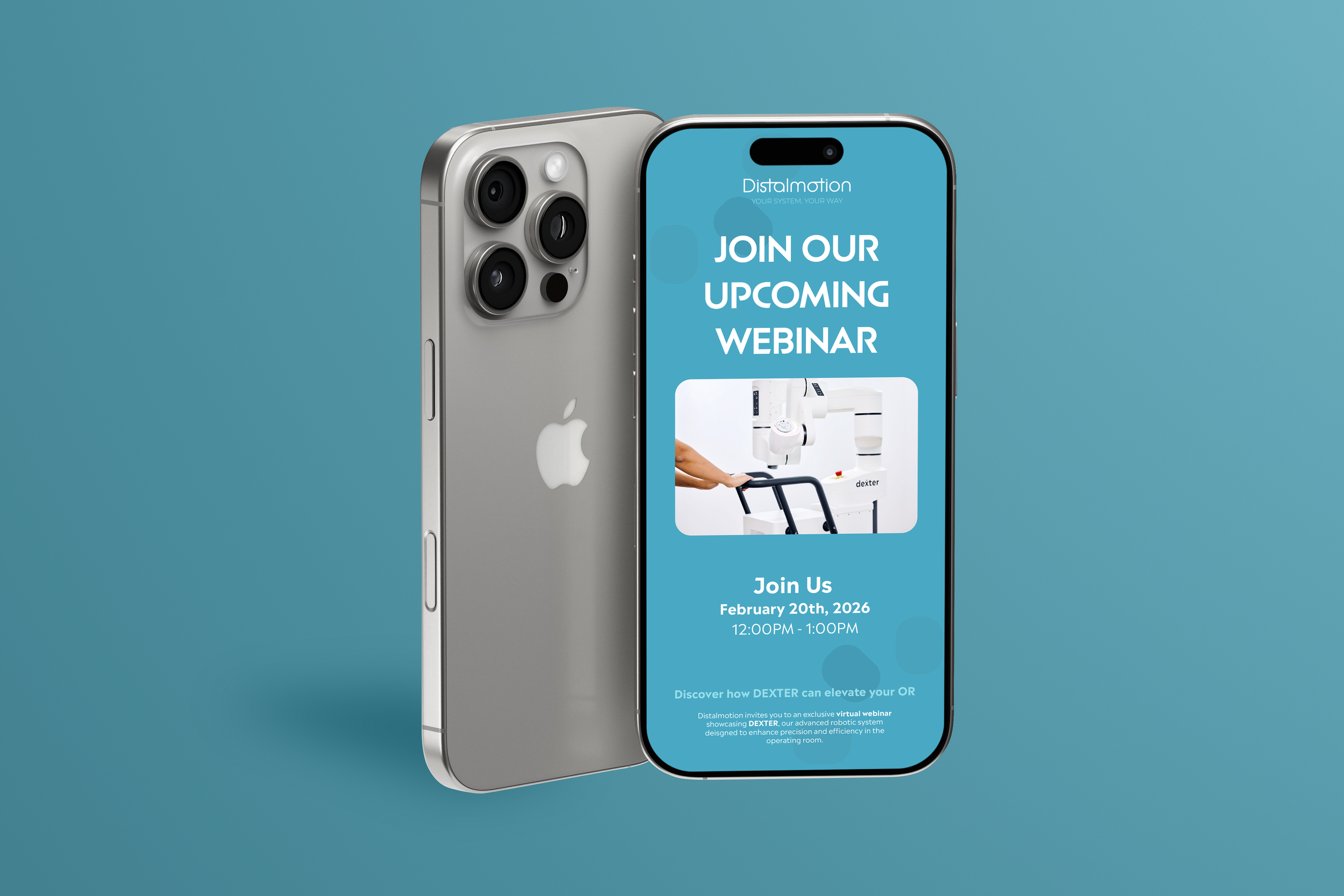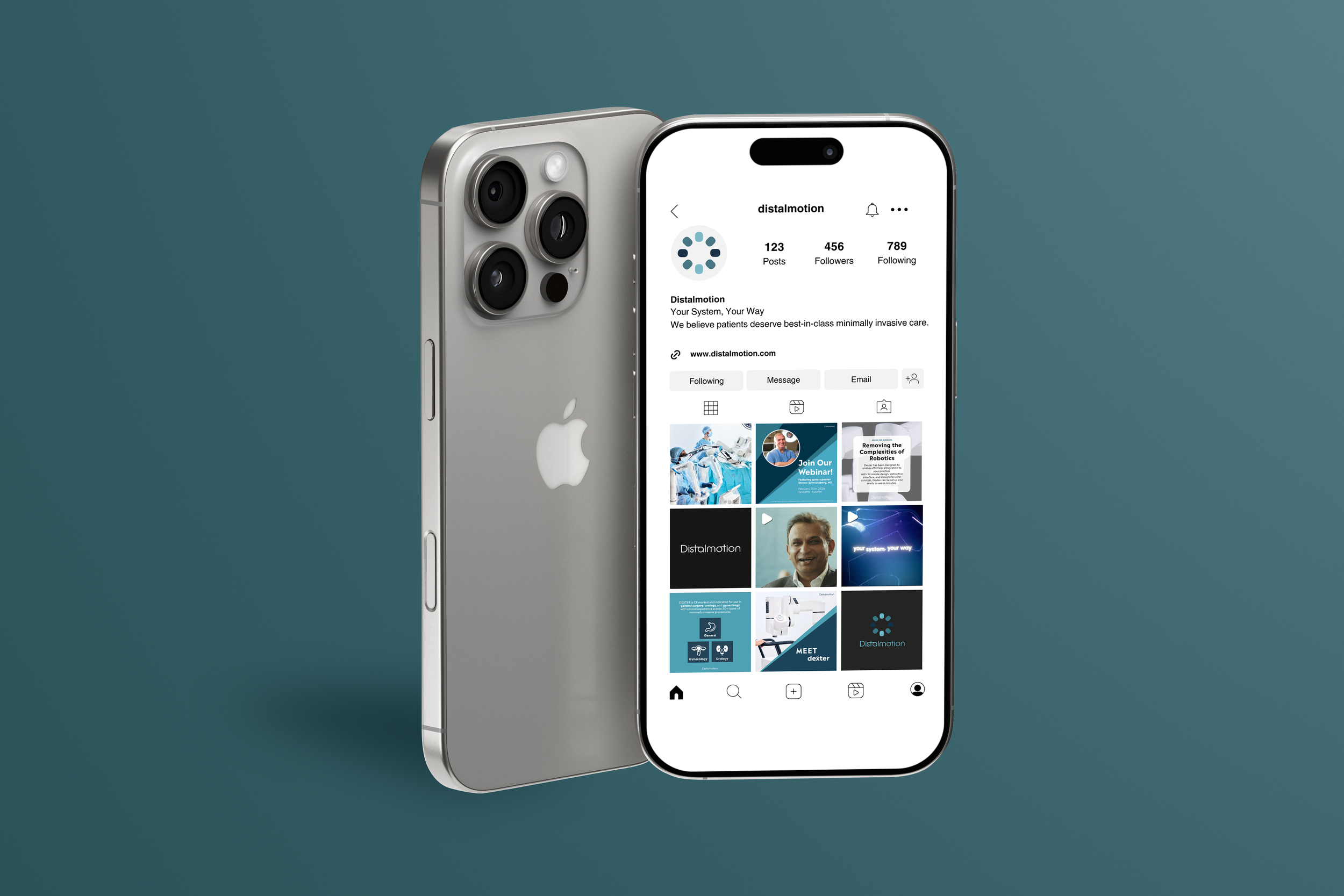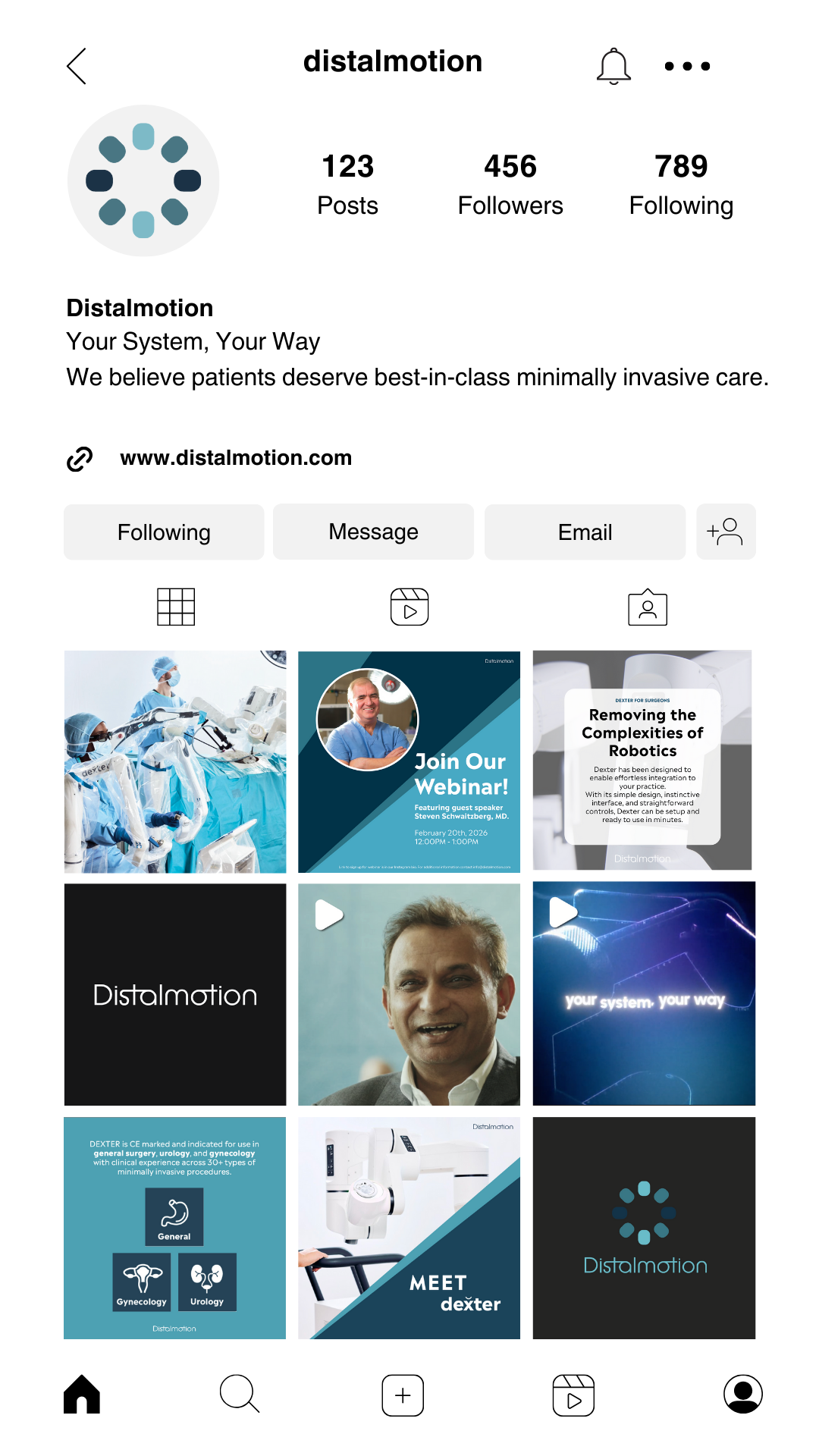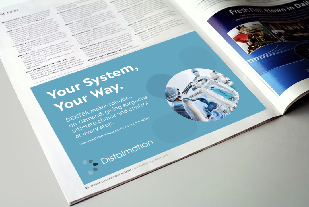 The design portion of our team worked alongside the marketing team to develop a strong and cohesive marketing plan for Distalmotion. For our tactical execution, we broke down how we would improve Distalmotion’s marketing moving forward. This included trade shows, field demos, webinars, email lists, brochures, and a content calendar for Instagram. I designed the email and a magazine advertisement in a similar format that was, again, cohesive with their current brand, but also progressive in pushing their marketing and visual branding forward.