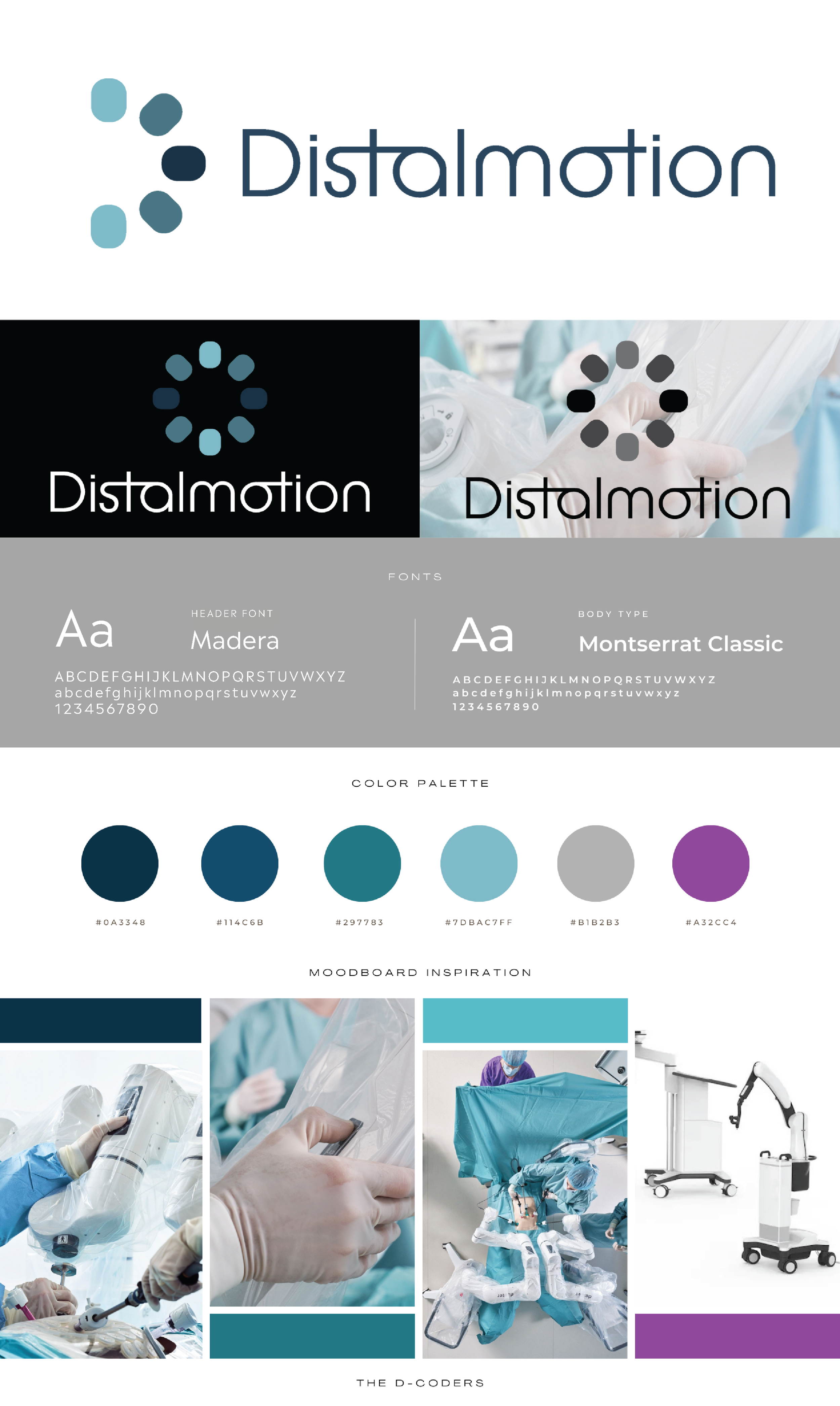 Because our team wanted to go above and beyond to support Distalmotion’s possible expansion, we decided to compile other extra assets, such as a brand asset video, moving imagery of the logo’s design components, a brand board, and a process book for them to examine the process behind our logo.
