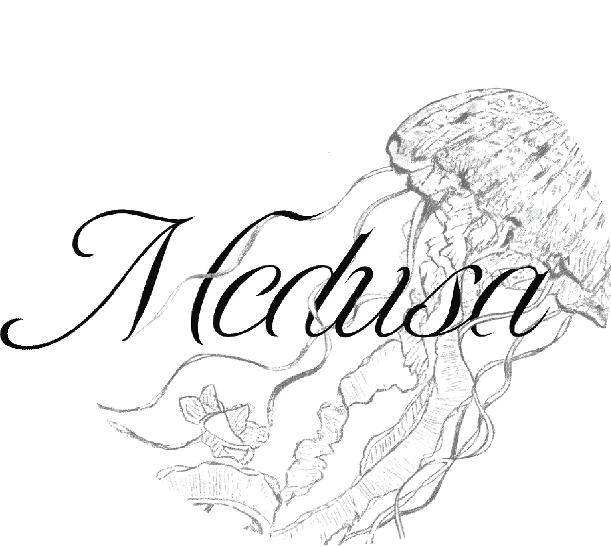 I took away parts of the calligraphic letters in order to mimic the form and flow of the jellyfish. I then made the tentacles of the jellyfish intertwine with my text, even mocking some parts of the letters themselves.